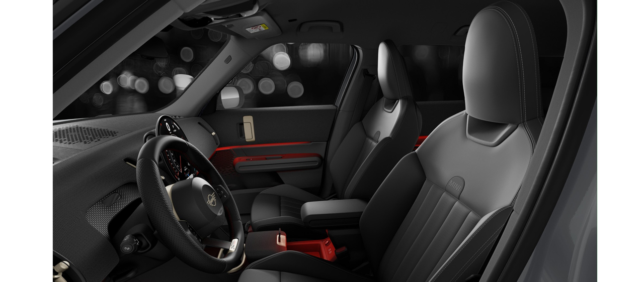 レジェンド・グレーのボディーカラーにブラック・スポーツ・ストライプが組み合わされ、存在感を放つ19インチのJCW ランウェイ・スポーク・ブラックホイールにヘリテージ・ミラー・キャップとJWC TRIMでどこまでもスタイリッシュに表現したSUV